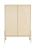 This contemporary cabinet blends artistic design with functional storage. Featuring a soft, neutral beige finish, it’s designed with geometric patterns on the cabinet doors, adding a unique touch of modern elegance to any living space. The cabinet offers two spacious cupboards with shelving for concealed storage. A sleek cut-out handle on each door maintains the clean aesthetic, while the minimalistic metal legs provide stability and a touch of refinement. Ideal for living rooms or entertainment areas, this cabinet combines beauty and practicality in one seamless piece.
